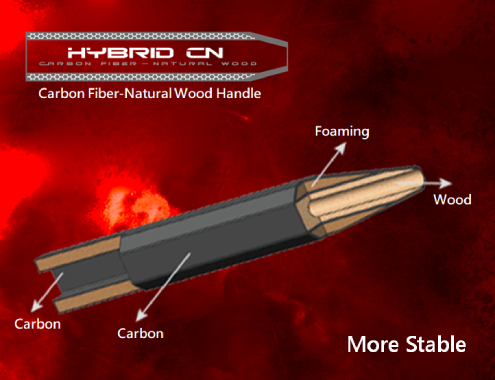 Ketsjerens håndtag: Træ, carbon-fiber, "resin-foam" giver den perfekte føling med ketsjeren